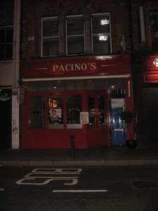 We split a salad and an entrée – I don’t remember what, but it was good. Then we gathered our bags and headed out into the night in search of craic, with a fond look back at Gorge Luc, or whatever.