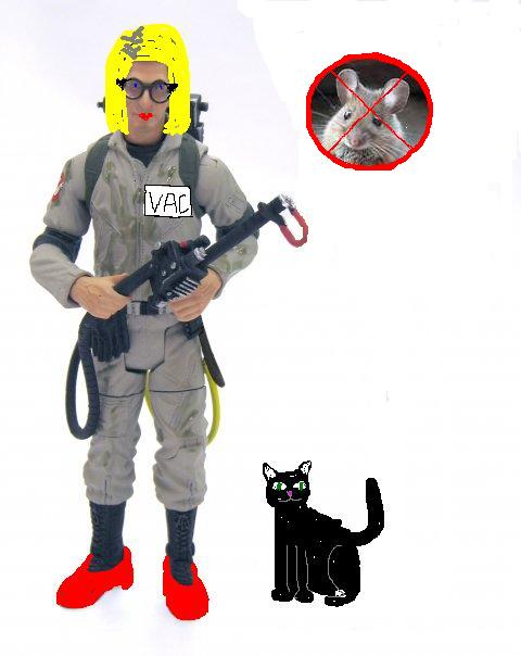 The red shoes are a nice touch with the exterminator-extraordinaire garb. I count myself among the squeamish and I think I’d just sign the deed over the mice and get the hell out. I guess I bear the scars of that family of squirrels who took up residence in our attic years ago (shudder).