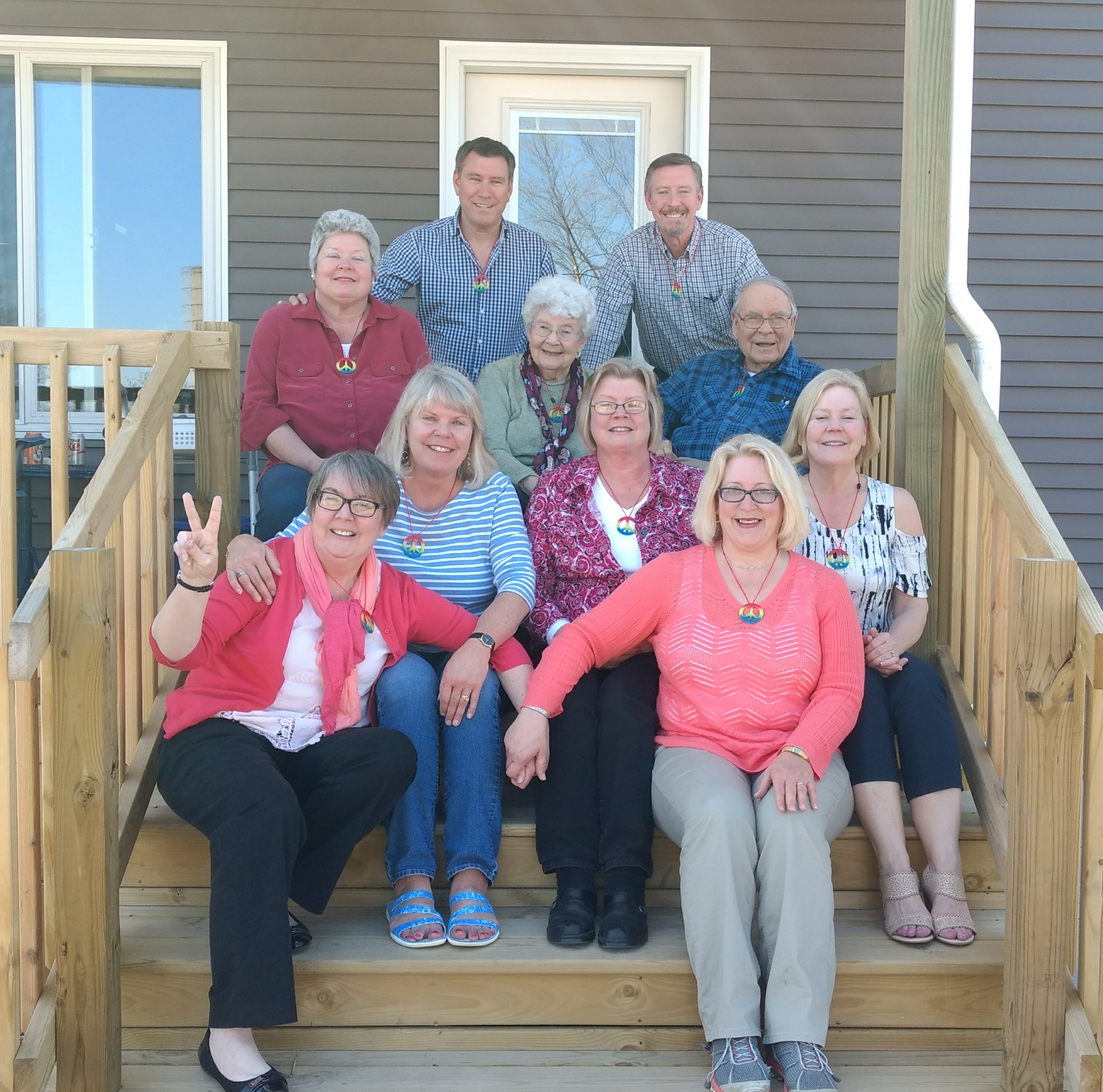 Mom, Dad and all their children at our sister’s 60th birthday part a couple of weeks ago. Our brother Pat is no doubt making devil ears behind all of our heads from his perch in heaven.